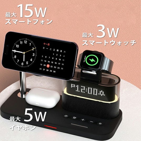 【最大15W急速充電/アラーム・デジタル時計機能/LED照明】