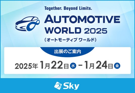 Sky株式会社は、2025年1月22日(水)~1月24日(金)に東京ビッグサイトで開催される、「第17回 オートモーティブ ワールド -クルマの先端技術 展-」に出展いたします。