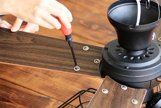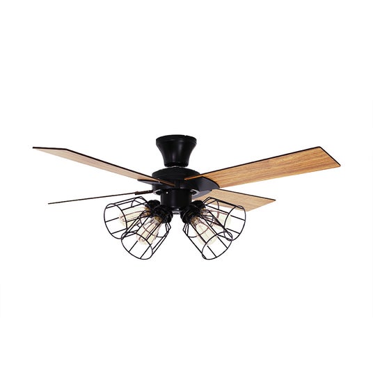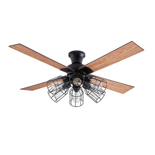 黒のマット仕上げでシックなボディに、木目調のブレードと黒のワイヤーシェードを合わせた