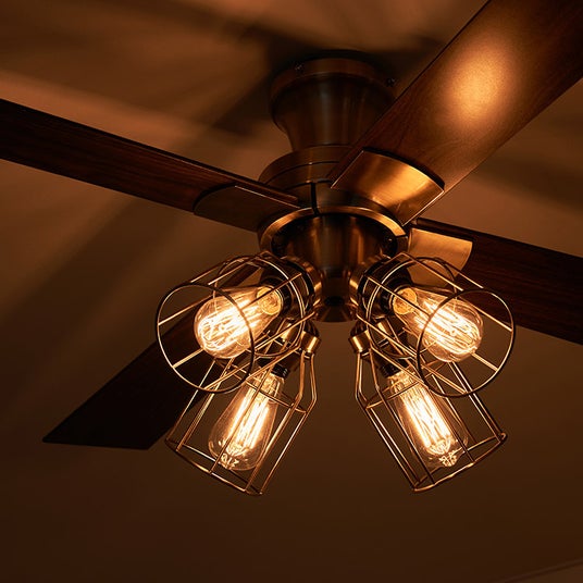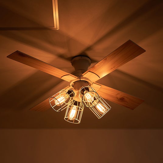 ファンの優しい風に加え、オレンジ色に光るエジソンバルブのノスタルジックな光も楽しめます。