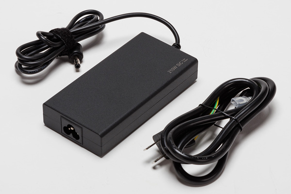 ACアダプターはコンパクトなサイズの210Wモデル。重量が405gなので、本体と一緒に持ち運んでも負担になりにくい。独自ユーティリティソフトの「バッテリーマネージャー」を使用すれば、充電量を50/75/100%の3段階に設定できる。バッテリーを長く保たせたいなら活用したい。BTOの購入オプションには、より小型の「USB PD 100W対応 AC充電器」が用意されているので、持ち運び専用に購入するのもアリだ。