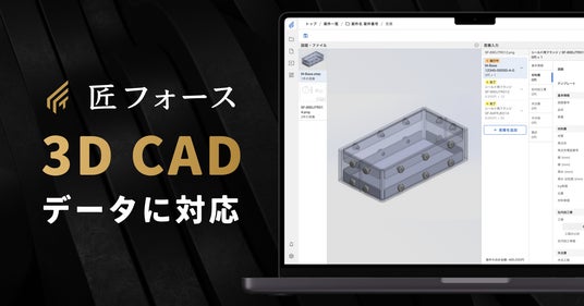 匠技研工業株式会社(タクミギケンコウギョウ、本社:東京都文京区、代表取締役社長:前田 将太)は、製造業向け図面管理・見積DXシステム「匠フォース」の新機能として、3D CADデータに対応したことをお知らせします。