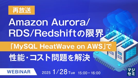 マジセミ株式会社は、大変好評をいただいた「【再放送】Amazon Aurora/RDS/Redshiftの限界」というテーマのウェビナーを再放送します。