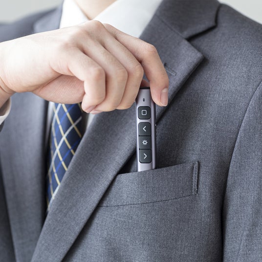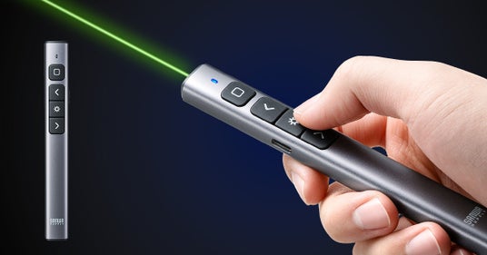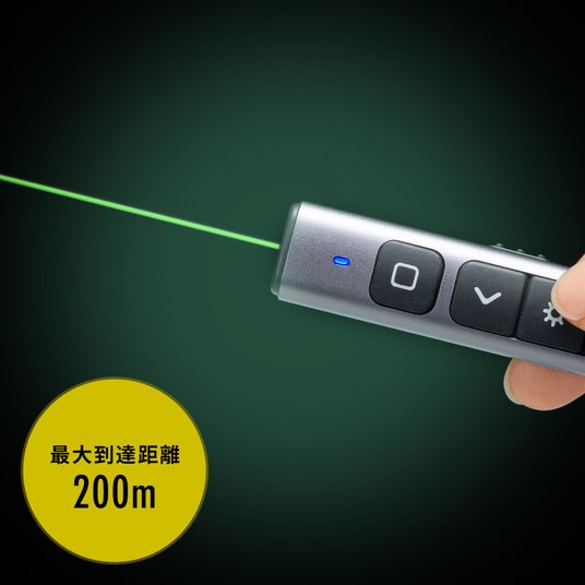 赤色光の約6倍、視覚的に見やすいとされる緑色光を使用したグリーンレーザーポインターを搭載しています。視認性が高く、プレゼン中に指し示している場所をはっきりと相手に伝えられます。