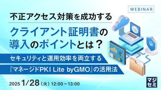 マジセミ株式会社は「不正アクセス対策を成功するクライアント証明書の導入のポイントとは?」というテーマのウェビナーを開催します。