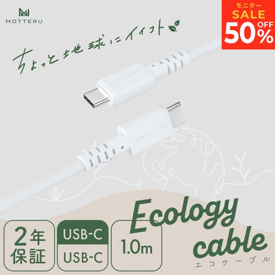 エコロジーケーブル USB-C to USB-C(MOT-ECOCC)"エコ素材"を採用した充電ケーブルです。