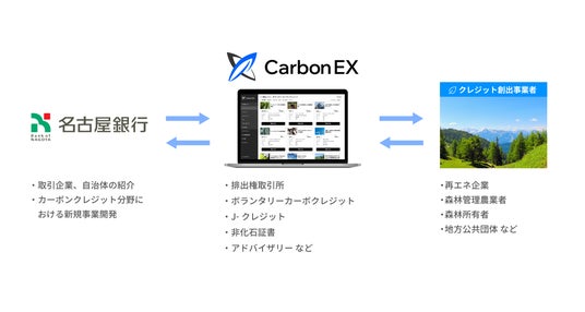 カーボンクレジット取引プラットフォームを運営するCarbon EXと、名古屋銀行が業務提携