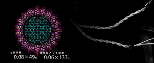 TINOのケーブルには、182本の高純度OFC銀メッキ銅線を、内部に二層導体同軸構造で採用しています。