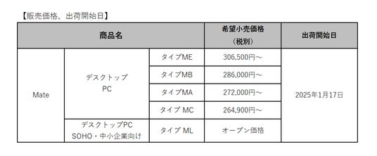 NECは、インテル第14世代CPUとDDR5メモリの採用による基本性能の強化に加え、AIの活用を促進する「Copilotキー」やメンテナンスの手間を軽減する「ハードウェアスキャン機能」の搭載などにより利便性を向上したビジネス向けデスクトップPC「Mate」シリーズの新商品5タイプ31モデルを本日より販売開始します。