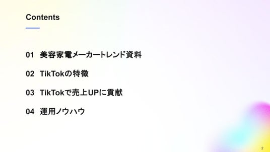 株式会社マイム(本社:東京都品川区、代表取締役社長:古川 湧一、以下「当社」)は、美容家電メーカーの皆様を対象に「2025年版TikTokトレンドレポート」を公開いたしました。本レポートは、TikTokを活用した最先端のプロモーション事例や成功パターン、そして結果に直結する戦略的な運用ノウハウを一冊に集約。