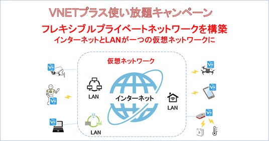 アプリ「VNETプラス」をインストールするだけでフレキシブルプライベートネットワークを構築。リモートワーク環境の実現、新サービスの新規開発等を安全かつ簡単に