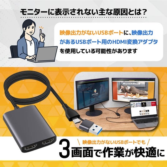 映像出力がないUSBでも3画面にできるHDMI変換アダプタ