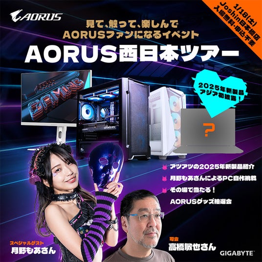 弊社取り扱いメーカーであるGIGABYTE社は、2025年1月18日(土)、ジョーシン 日本橋店において、注目の新製品をご紹介するスペシャルイベント「見て、触って、楽しんで、AORUSファンになるイベント AORUS西日本ツアー」を開催いたします。