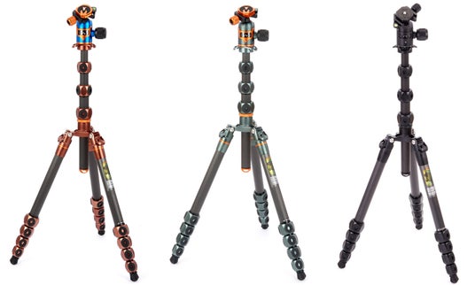 3段の脚と1段のセンターコラムを備えた、安定性と耐荷重に優れたカーボン三脚とボールヘッドのキットです。