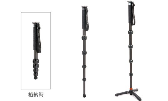 機能性と携行性のバランスに優れた、5段のカーボン製一脚です。