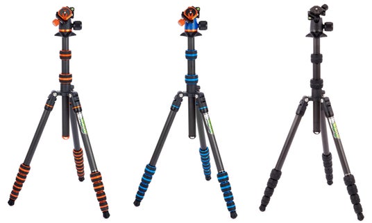 5段の脚と2段のセンターコラムを備えた、携行性に優れたカーボン製トラベル三脚とボールヘッドのキットです。