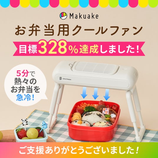 【開始から4日間で目標328%達成!】たった5分でお弁当を適切な温度へ導き均一に冷ます「お弁当用クールファン」のMakuake応援購入を実施中。
