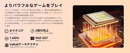 Unisoc T606は、ベテランSC9863Aと比較して、優れた性能を発揮するA75高性能コアを誇っています。高効率のA55コアと相まって、よりスムーズなタプレットの使用体験を提供します。