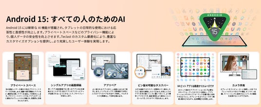 Android 15には斬新なAI機能が搭載され、タブレットの日常的な使用における応答性と直感性が向上します。プライベートスペースなどのプライバシー機能により、個人データの安全性を向上させます。 Teclastのカスタム最適化により、豊富なカスタマイズオプションを提供し、より充実したユーザー体験を実現します。