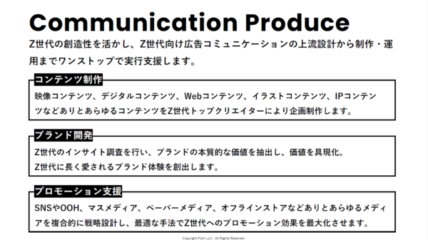・コンテンツ制作 ・ブランド開発 ・プロモーション支援