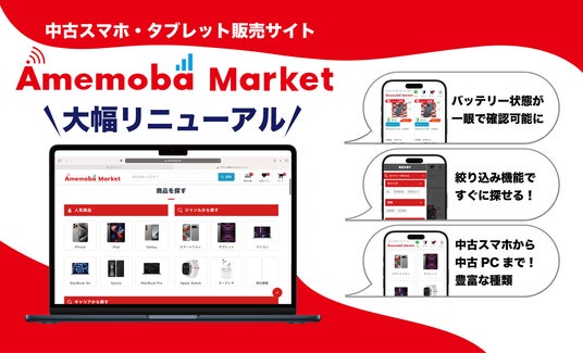 株式会社COD(所在地:東京都台東区)は、より快適で便利なショッピング体験をお届けするため、中古スマホ・タブレットの販売サイト「アメモバマーケット」を2025年1月11日に全面リニューアルいたしました。