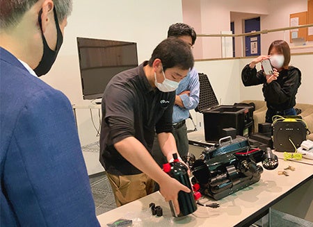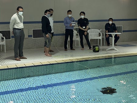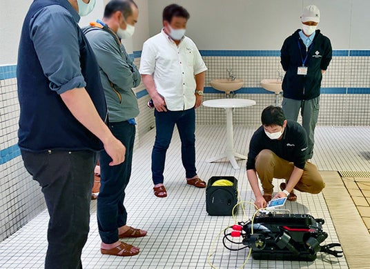 日本初上陸の、RTK測量・AI点検機能を備えたオプションモジュールを用いた水中ドローンによる測量や点検のデモンストレーションを行います
