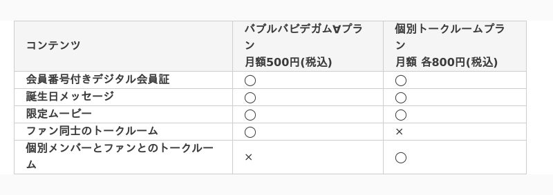 ●バブルバビデガム∀プラン:月額500円