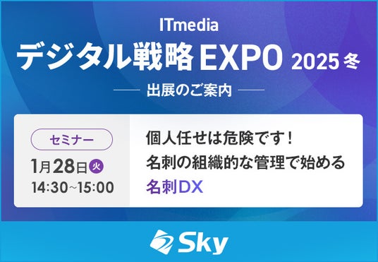 Sky株式会社は、2025年1月28日(火)~2月24日(月)に開催される、ITmedia主催のオンライン展示会「ITmedia デジタル戦略EXPO 2025 冬」に出展いたします。