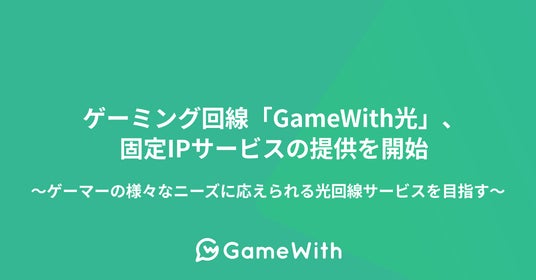 株式会社GameWith(本社:東京都港区、代表取締役社長:今泉卓也、以下「当社」)が提供するゲーマー向けインターネット回線「GameWith光」は、GameWith光 1G および10Gのご契約者様向けに、固定IPサービスの提供を開始いたしましたのでお知らせいたします。