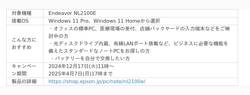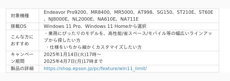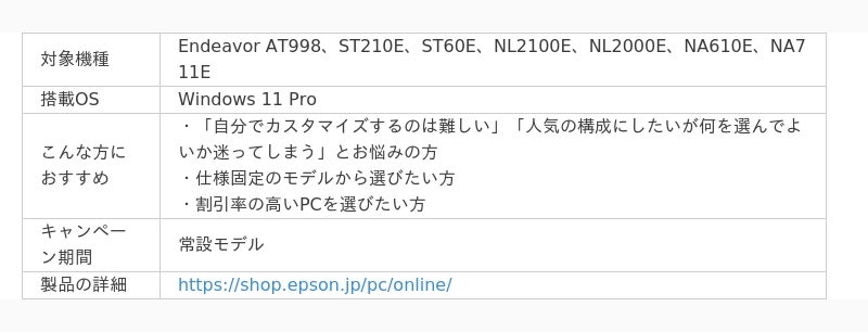 今回エプソンダイレクトはWindows 10 からWindows 11 への移行をお手伝いするため、下記のお得なモデルをご用意いたしました。