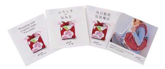 風呂敷をラッピングとしてご利用頂いたお客様には、英語・中国語のふろしきの使い方がわかるイラスト入りのリーフレットをプレゼントしております。