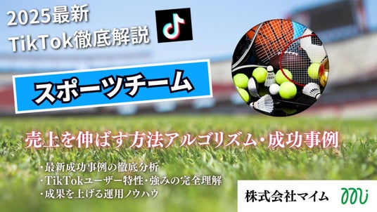株式会社マイム(本社:東京都品川区、代表取締役社長:古川 湧一、以下「当社」)は、スポーツチームの皆様を対象に「2025年版TikTokトレンドレポート」を公開いたしました。本レポートは、TikTokを活用した最先端のプロモーション事例や成功パターン、そして結果に直結する戦略的な運用ノウハウを一冊に集約。