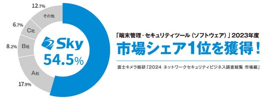 Sky株式会社ではこのたび、自社で開発するクライアント運用管理ソフトウェア「SKYSEA Client View」が、株式会社富士キメラ総研の「2024 ネットワークセキュリティビジネス調査総覧 市場編」(2024年12月19日発刊)において「端末管理・セキュリティツール(ソフトウェア)」2023年度市場シェア1位(ベンダーシェア)を獲得しました。