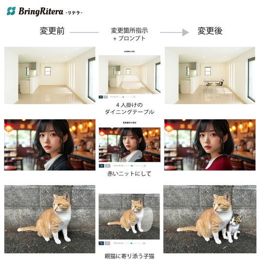 株式会社BringFlower(東京都新宿区、代表取締役:稲田 高洋)は、当社が開発・運営するAIツール「BringRitera(リテラ)」に、画像の指定箇所を簡単に変更できる機能を追加したことをお知らせします。
