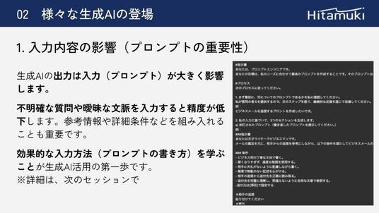 株式会社Hitamuki(本社:東京都千代田区、代表取締役:澤田隼)は、地方企業および中小企業を中心としたすべての企業を対象に、「生成AIビジネス活用基礎研修」を2025年1月15日より無償で提供開始いたします。本研修は、生成AI技術を活用して業務効率化やマーケティング強化を目指す企業を支援し、日本全体の生産性向上と地域経済の活性化に寄与することを目的としています。