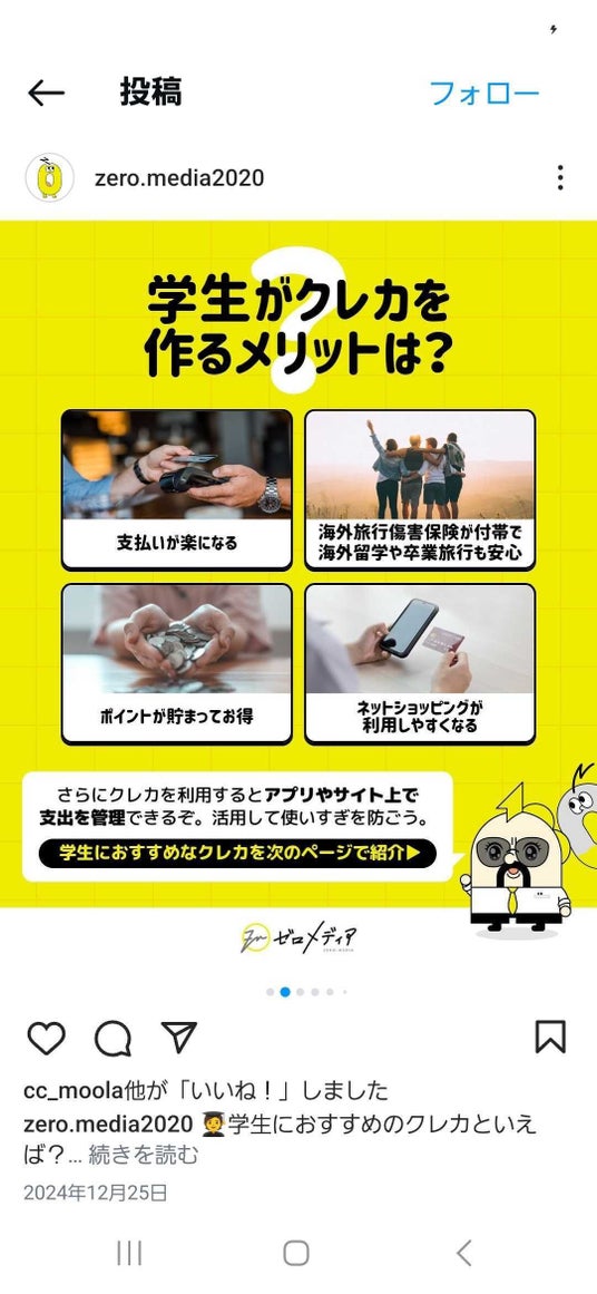 ゼロメディアではクレジットカードに関する情報をより深く簡単に知ってもらうことを目的に、Instagramでオリジナル解説画像を作成。公式アカウント「zero.media2020」にて公開中です。