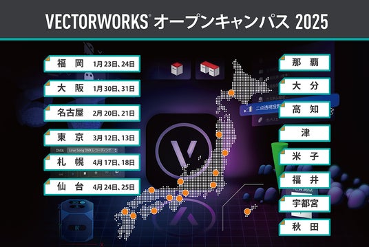 2025年1月23日よりCAD・BIMツールVectorworksの最新バージョン「Vectorworks 2025」を体感いただけるVectorworks 操作体験セミナー「Vectorworks オープンキャンパス」を全国14都市で開催いたします。