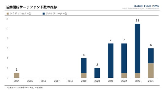 直近では、トラディショナル型のサーチファンドも増加している。日本で活動するトラディショナル型サーチファンドのナレッジ化が進んでいることが要因のひとつと推察される。