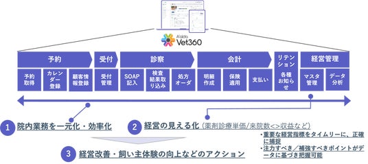 (1) 動物病院のあらゆる業務を一元管理しつつ、データを起点とした経営管理を支援