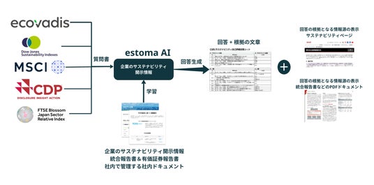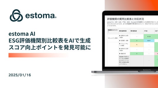 株式会社estoma(本社:東京都中央区、代表取締役:伊藤総一郎)は、CDPやDJSI,FTSE等の評価機関対応の効率化を目的にestoma AI機能をアップデートいたしました。さらに回答生成だけではなく開示のAIアドバイスやエビデンスチェックまでAIで徹底サポート。