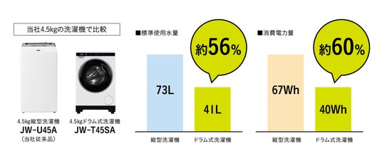 当社では洗濯機の多様化する消費者ニーズにお応えすべく、様々な機能や容量のモデルをラインナップしております。特にスペースパフォーマンスやタイムパフォーマンスを重視するひとり暮らしの方からは、「設置場所が狭いが、ドラム式洗濯機が欲しい」、「乾燥機能は使わない」といったご意見を頂いておりました。