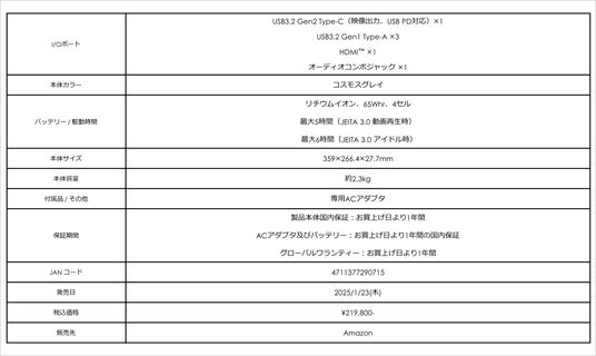 「Sword-16-HX-B14VFKG-5002JP」シリーズは、2025年の最新ハンティングアクションゲームをプレイするために必要な機能・性能を備えたハイスペックゲーミングノートPCです。