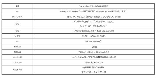 ・Sword 16 HX B14Vシリーズ製品ページ:https://jp.msi.com/Laptop/Sword-16-HX-B14VX