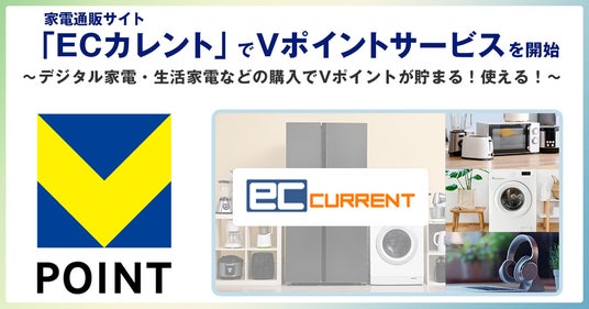 このたび、「ECカレント」のさらなるサービス向上を目指し、Vポイントが貯まる・使えるサービスを開始いたします。なお、「ECカレント」でのショッピングポイント(決済手段に関わらない、お買い物で貯まるポイント)における共通ポイントサービス導入は初となり、「ECカレント」サイト内で、ご希望の商品購入により貯まるポイント数の確認や、購入時に使用したいポイント数を指定してご利用いただけるようになります。