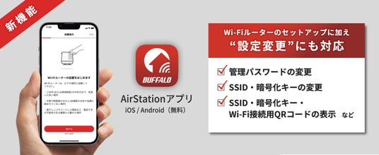 メルコホールディングス(東・名 6676)グループの株式会社バッファロー(本社:名古屋市、代表取締役社長:牧 寛之)は、同社が提供する累計ダウンロード数450万超え(※1)のiOS・Android用の無料アプリケーション「AirStationアプリ」において、Wi-Fiルーターの設定変更機能を追加したVer.3.4の提供(※2)を開始いたしました。