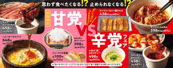 焼肉の和民は、1月22日から期間限定で、「甘い」と「辛い」のクセものグルメを提供する「甘党vs辛党フェア」を開催します。