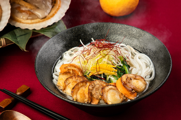 グルテンフリーの米麺には国産焼きホタテをトッピング。ゆずのさわやかな香りが食欲をそそります。