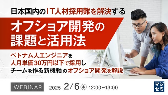 マジセミ株式会社は「日本国内のIT人材採用難を解決するオフショア開発の課題と活用法」というテーマのウェビナーを開催します。