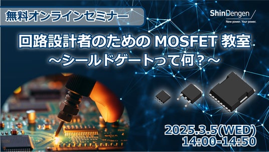 新電元工業株式会社は、MOSFETの最新トレンドと、シールドゲート構造の特徴、回路に与える効果について解説を目的としたセミナーを2025年3月5日にライブ配信形式で開催いたします。