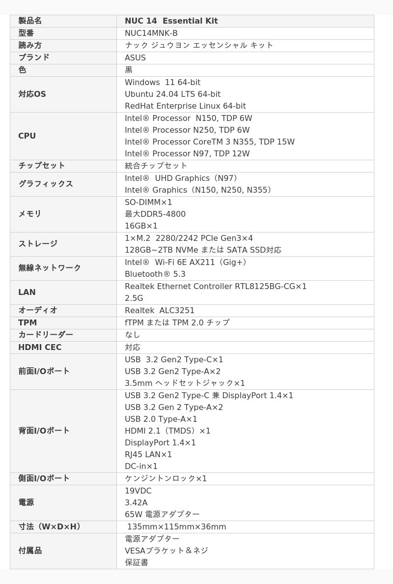 ASUS JAPAN株式会社は、最新のIntel(R) Core(TM) Nシリーズプロセッサを搭載し、小型で高性能、拡張性があり、豊富な接続性と信頼性で、様々なシーンに対応するASUS NUC 14 Essentialを発表しました。
